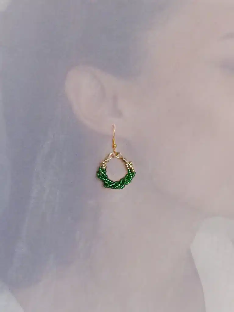 Le modèle Celine est une paire de boucles d’oreille bohème chic qui s’inscrit pleinement dans l’univers bohème chic et authentique de la marque LUILA, avec un esprit coloré, vibrant et résolument élégant. Les petites perles éclatantes vertes et dorées apportent un mouvement subtil et délicat, donnant à ces boucles une légèreté aérienne et un éclat solaire. Tissé avec du fil de fer fin et doré, choisi pour sa résistance et son élégance intemporelle. Long de 4,3cm, elle offre une présence marquée, moderne et raffinée.