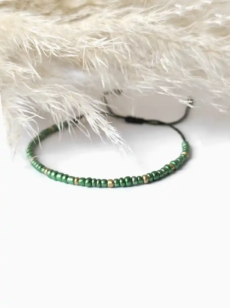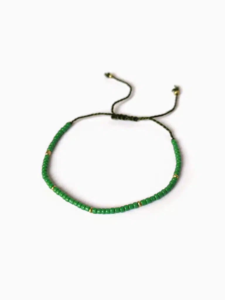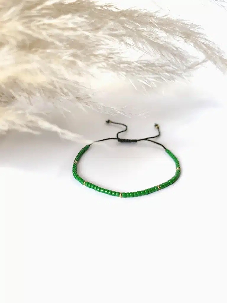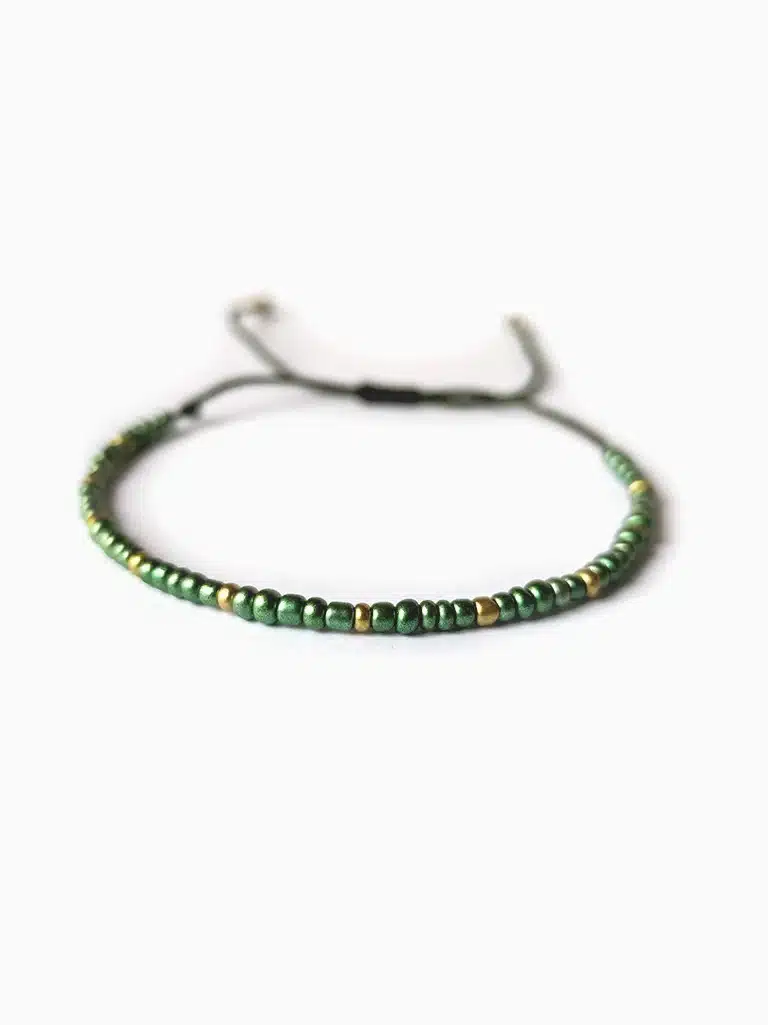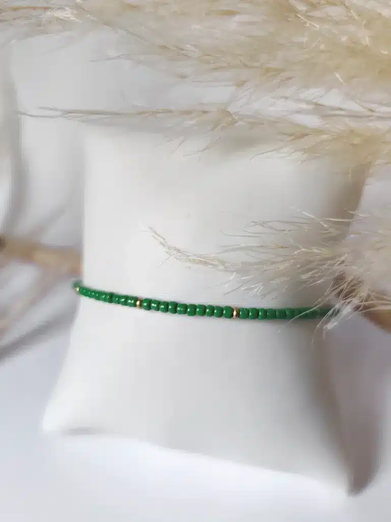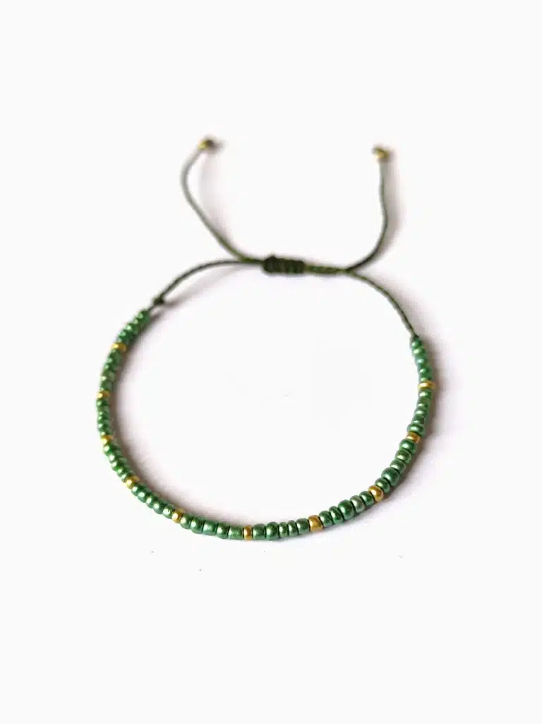 Type d’article: Bracelet fin en perles de rocaille fait main | Vert – Doré